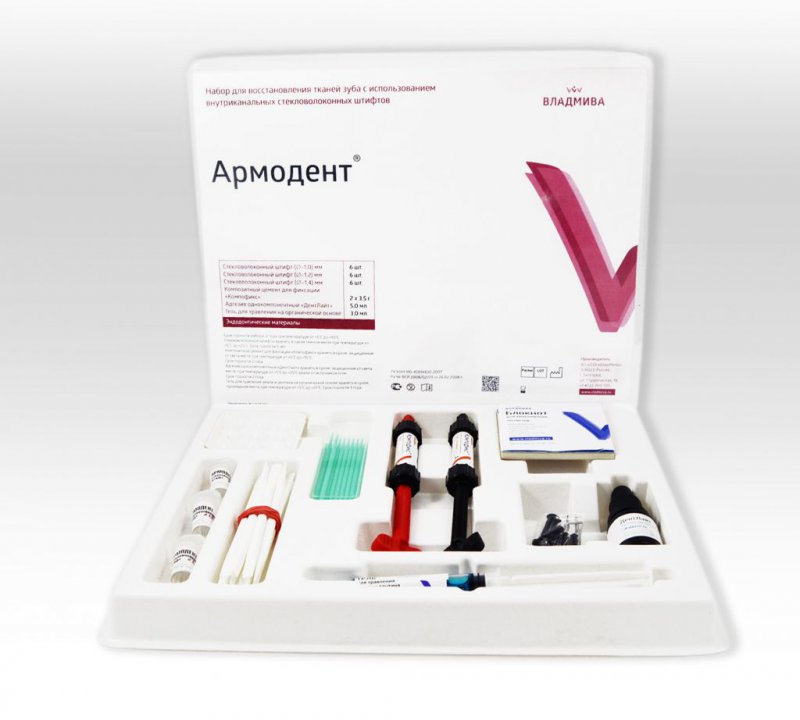 Входящие в набор фиксирующий композитный цемент двойного отверждения «Компофикс» и однокомпонентный адгезив «ДентЛайт» и обеспечивают прочное сцепление и надежное краевое прилегание, основанное на химической адгезии при реставрации анатомической формы зуба. Гель для травления, на основе органического полимера, обладает оптимальной текучестью и полностью смывается водой. Гель содержит бактерицидное вещество (хлорид бензалкония), которое оказывает микробостатическое и микробоцидное действие на грамположительные и грамотрицательные бактерии и кандиды, позволяет устранить возможную чувствительность, связанную с бактериальным загрязнением поверхности обрабатываемого зуба Форма выпуска: