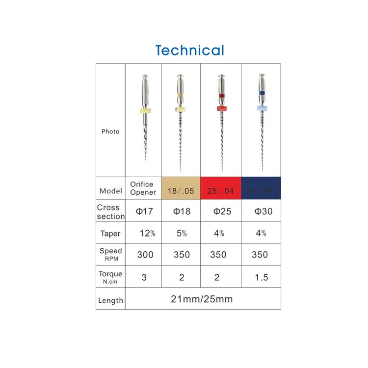 - Высокая пластичность файлов в сочетании с незначительной упругостью и удачным дизайном минимизируют риск перфорации и образования уступов.