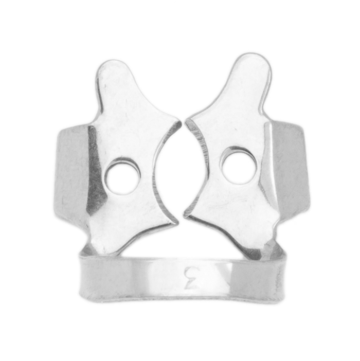 Кламп для моляров верхней и нижней челюсти, с невыраженным экватором и/или со значительно разрушенной медиальной поверхностью зуба.